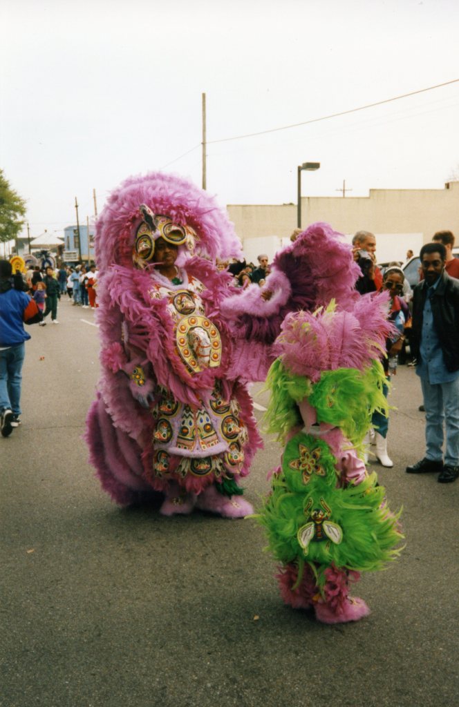 Here is an old photo of Mardi Gras Indians from when I lived in New Orleans back in the 90’s. For more about the history of Mardi Gras Indians click here.